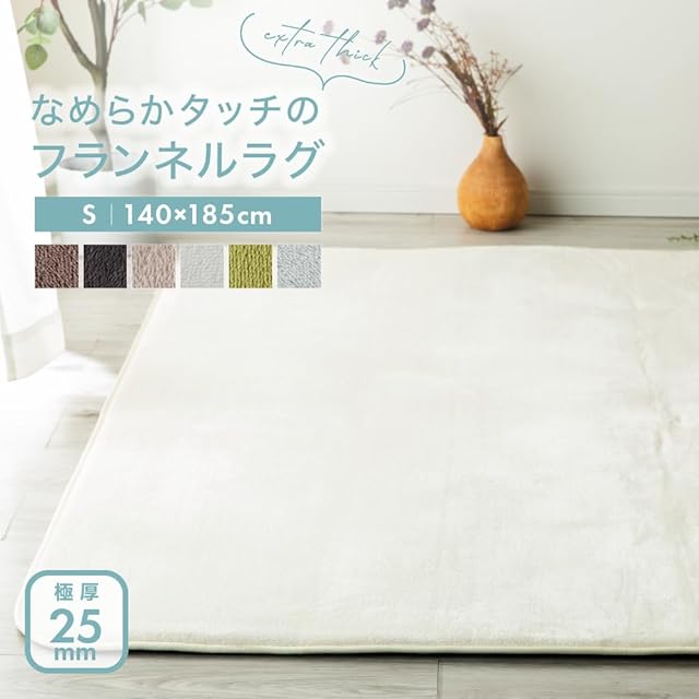 AQUA (アクア) ラグ ホットカーペットカバー アイボリー Sサイズ(135×185cm 1.5帖相当) 極厚25mm 高反発ウレタン ふわふわ もっちり フランネルラグ 抗菌防臭 防ダニ 低ホルムアルデヒド 乳幼児基準 床暖房 ホットカーペット 対応 洗える 20112108
