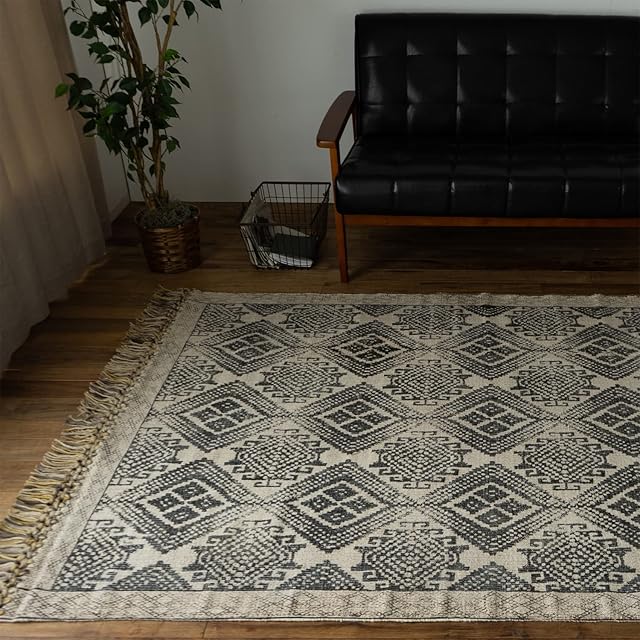 【備考】洗濯可(洗濯ネットをご使用ください、乾燥機は不可) / 折りたたみ可 / 床暖房の上敷き、ホットカーペットカバー対応 (※商品写真は140x200cmを使用しております。)/風合いにこだわる為、糸をミックスしてヴィンテージ感が出るよう作られております。一点一点手作業で作る為に織りムラや歪みなどがございますが、ハンドメイドの味わいをご理解の上ご購入お願いいたします。/フリンジはウール素材となり遊び毛が出ます。/洗濯時に色落ちする場合がございますので、漂白剤及び漂白剤入りの洗剤のご使用は避け、他の物と分けて単独でお洗いください。洗濯で縮みますのでご注意ください。/完全に乾いた状態でご使用ください。/インド綿製品は色落ちしやすい特性があります。摩擦や水濡れ、汗によって色が移る可能性がございます。/インド綿の特性上、織りムラ、節、ネップ等ございますのでご了承の上、ご購入ください。/ 商品は[丸巻き]または[折りたたみ]の状態でお届けいたします。