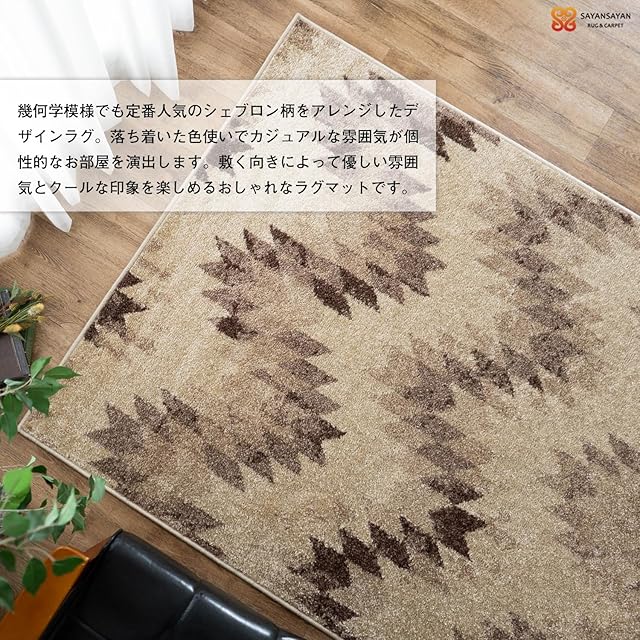 サヤンサヤン シェブロン柄 ラグ カーペット カイエ 133x190 1.5畳 ベージュウィルトン織