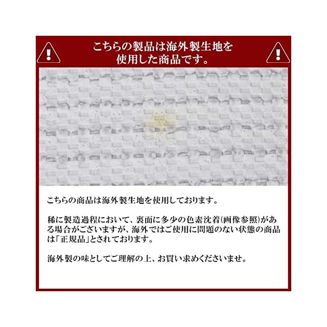 ※こちらの商品は海外製生地を使用しております。 稀に製造過程において、裏面に多少の色素沈着ある場合がございますが、 海外ではご使用に問題のない状態の商品は「正規品」とされております。 海外製の味としてご理解の上、お買い求めくださいませ。