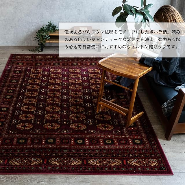 サヤンサヤン ボハラ柄 ラグマット 絨毯 レジェンドⅢ 100x150 1畳 レッド ウィルトン織