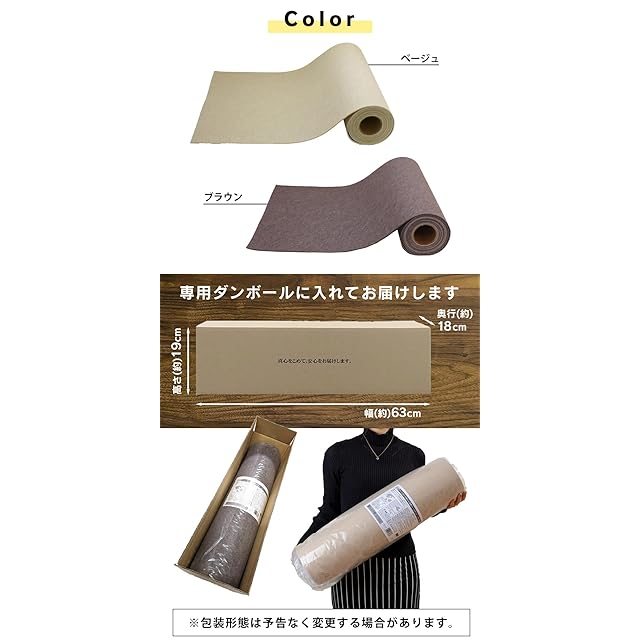 ■カラー:ベージュ、ブラウン ■サイズ:(約)幅60×長さ500cm ■重量:(約)2.5kg ■材質:表面:ポリエステル、裏面:アクリル樹脂※洗濯は手洗いのみ ■生産国:日本 ■JANコードベージュ:4517701780675、ブラウン:4517701787674