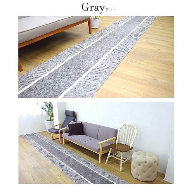 San-Luna 廊下敷き ロング カーペット 65cm × 120cm 【Aran(アラン)】 日本製 洗える ふかふか 厚手 廊下 マット 絨毯 滑り止め付き 洗濯 抗菌 防臭 吸水 速乾 シンプル おしゃれ 長方形 グレー