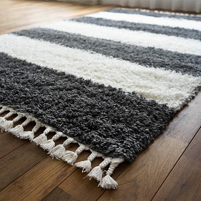 サヤンサヤン ボーダー シャギー ラグマット セル 80x150 1畳 ダークグレー ウィルトン織