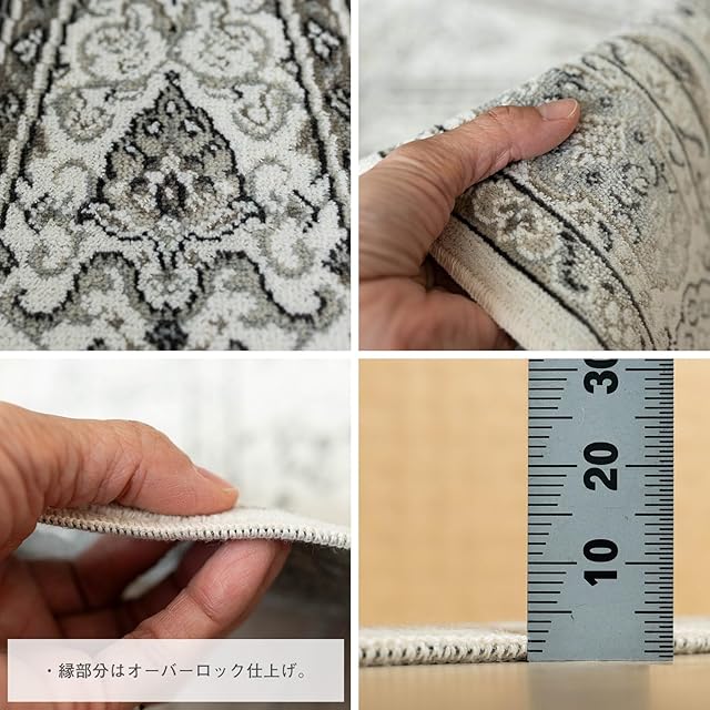 【輸入カーペットを安心してご利用いただくためのお願い】 ●輸入ラグに関して ※同じ商品でも製造ロットの違いによって、サイズや、色味、柄模様の左右が反転していたり、位置がズレている場合がございます。ただし、現地の工場や倉庫での検品をクリアした商品を輸入しています。あらかじめご了承くださいませ。/ ●においに関して ※ご使用当初、裏面に塗られる仕上げの接着塗料(ラテックス剤)のにおいがする場合がございます。人体への影響はありませんが、においに敏感の方や、ご心配の方はご理解の上ご購入お願いいたします。開封後常温のもとで気化(蒸発)するため、においはご使用につれてなくなります。気になる場合は風通しの良いところで陰干ししていただきますと、より早く解消されます。/ ●サイズに関して ※カーペットの製法上、表示サイズより0~3%の誤差がございます。/ ※いずれも商品の初期不良ではございませんので返品・交換は行なっておりません。(※お客様で返品の送料ご負担によるキャンセルは、返品規定に基づきお受けさせていただきます。)/ ※裏面の製品シールは剥がさないでご使用ください。