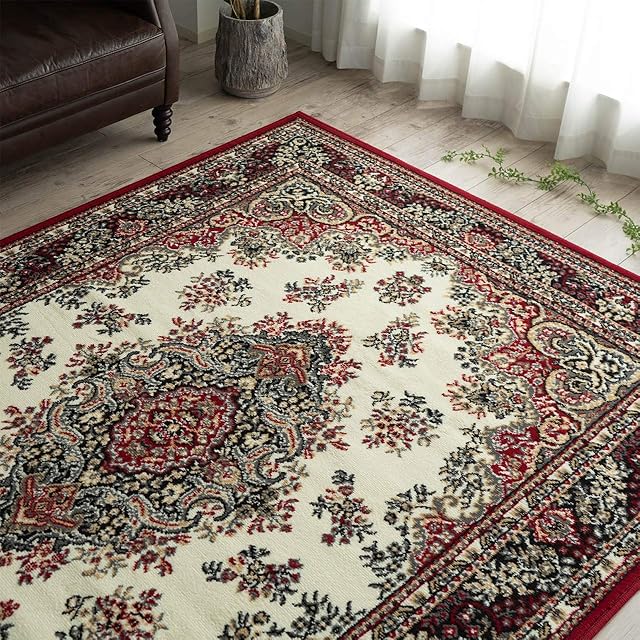【輸入カーペットを安心してご利用いただくためのお願い】 ●輸入ラグに関して ※同じ商品でも製造ロットの違いによって、サイズや、色味、柄模様の左右が反転していたり、位置がズレている場合がございます。ただし、現地の工場や倉庫での検品をクリアした商品を輸入しています。あらかじめご了承くださいませ。/ ●においに関して ※ご使用当初、裏面に塗られる仕上げの接着塗料(ラテックス剤)のにおいがする場合がございます。人体への影響はありませんが、においに敏感の方や、ご心配の方はご理解の上ご購入お願いいたします。開封後常温のもとで気化(蒸発)するため、においはご使用につれてなくなります。気になる場合は風通しの良いところで陰干ししていただきますと、より早く解消されます。/ ●サイズに関して ※カーペットの製法上、表示サイズより0~3%の誤差がございます。/ ※いずれも商品の初期不良ではございませんので返品・交換は行なっておりません。(※お客様で返品の送料ご負担によるキャンセルは、返品規定に基づきお受けさせていただきます。)/ ※裏面の製品シールは剥がさないでご使用ください。
