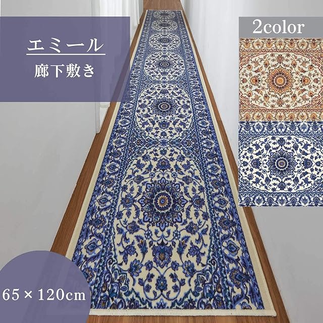 San-Luna 廊下 カーペット 廊下敷き ロング 【エミール】 65cm × 120cm 日本製 ロングマット 廊下 マット ラグ ブランド 高級 長い キッチン 床保護 抗菌 防臭 吸水 速乾 洗える 滑り止め 防滑 ブルー 青 65 × 120