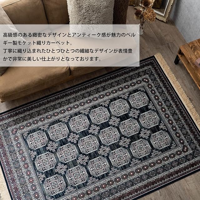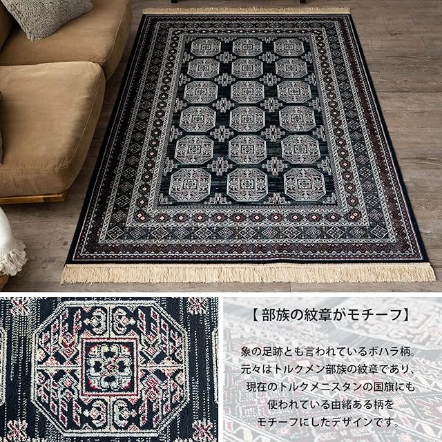 【輸入カーペットを安心してご利用いただくためのお願い】 ●輸入ラグに関して ※同じ商品でも製造ロットの違いによって、サイズや、色味、柄模様の左右が反転していたり、位置がズレている場合がございます。ただし、現地の工場や倉庫での検品をクリアした商品を輸入しています。あらかじめご了承くださいませ。/ ●においに関して ※ご使用当初、裏面に塗られる仕上げの接着塗料(ラテックス剤)のにおいがする場合がございます。人体への影響はありませんが、においに敏感の方や、ご心配の方はご理解の上ご購入お願いいたします。開封後常温のもとで気化(蒸発)するため、においはご使用につれてなくなります。気になる場合は風通しの良いところで陰干ししていただきますと、より早く解消されます。/ ●サイズに関して ※カーペットの製法上、表示サイズより0~3%の誤差がございます。/ ※いずれも商品の初期不良ではございませんので返品・交換は行なっておりません。(※お客様で返品の送料ご負担によるキャンセルは、返品規定に基づきお受けさせていただきます。)/ ※裏面の製品シールは剥がさないでご使用ください。