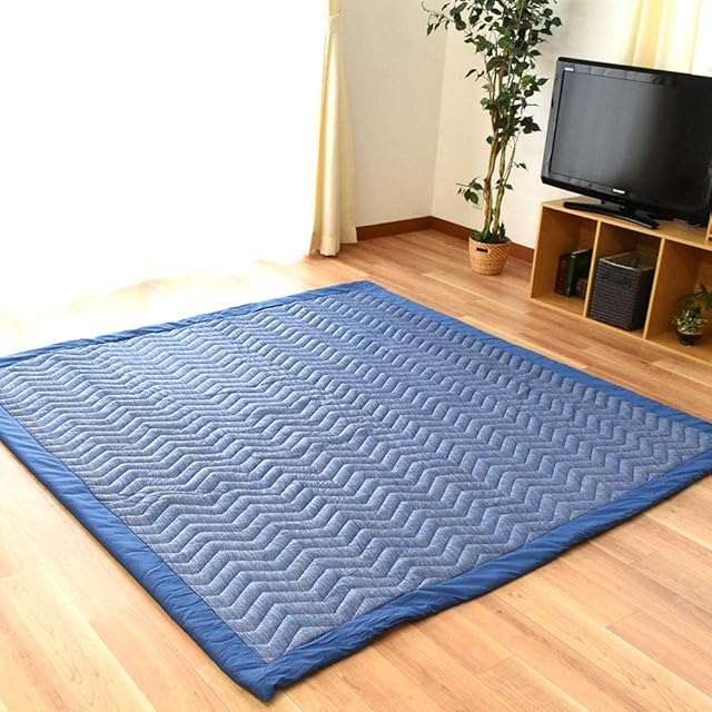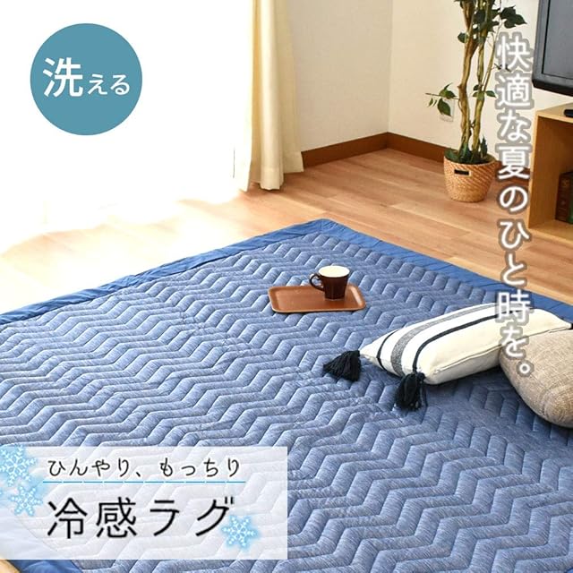 冷感 ラグ 洗える 夏 185×185cm 正方形 ネイビー もっちりキルト カーペット ラグカーペット ラグマット さらさら 裏面不織布 接触冷感 ひんやりラグ ひんやり 夏用 シンプル