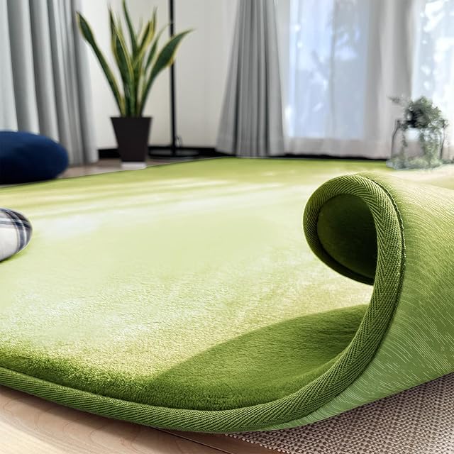 REDREAM 第3世代 カーペット ラグ 洗える 両面 低反発 厚手 防音 冬 ぽかぽか 夏 ひんやり 滑り止めシート付き らぐまっと ホットカーペット 対応 約1.5畳 じゅうたん (グリーンT 130x185cm 長方形)
