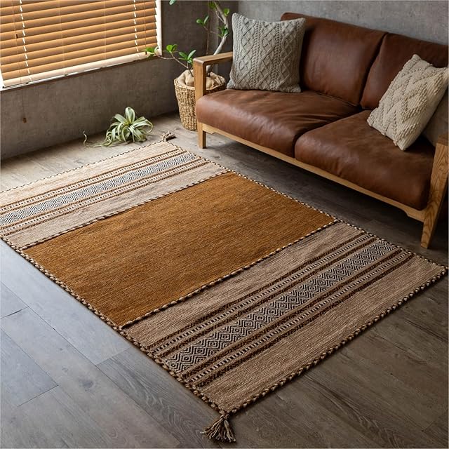 サヤンサヤン 手織り アジアン ラグ マット インドキリム 90x130 1畳 ベージュ インド綿