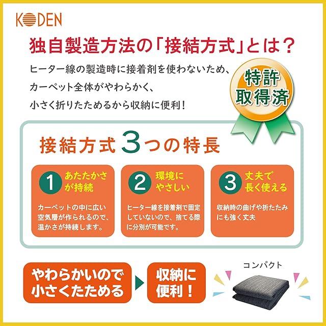 広電(KODEN) ホットカーペット 1畳 本体 グレー 小さく畳める 省エネ スライド温度調節 ダニクリーン 176×88cm VWU1013