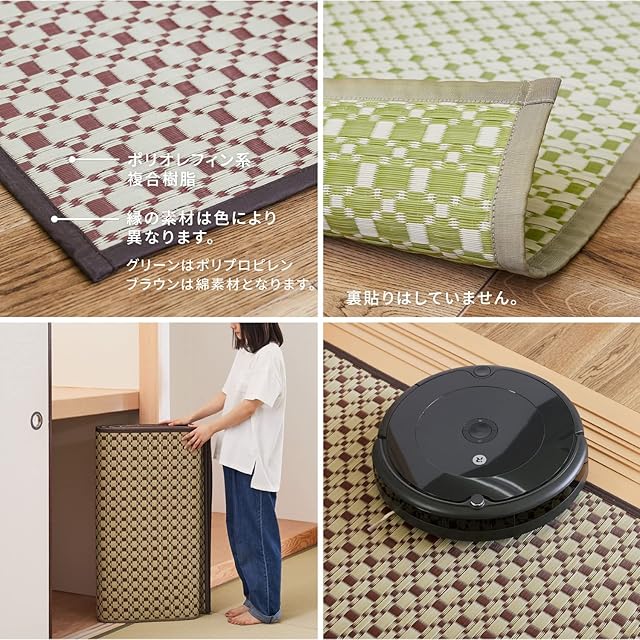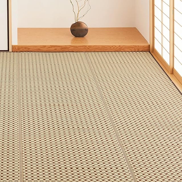 萩原 洗える い草風カーペット ブラウン 江戸間4.5畳 「ルイス」 ラグ 花ござ 和モダン ペット 保護