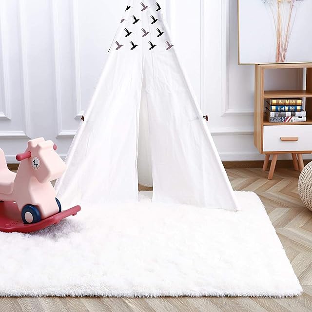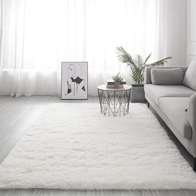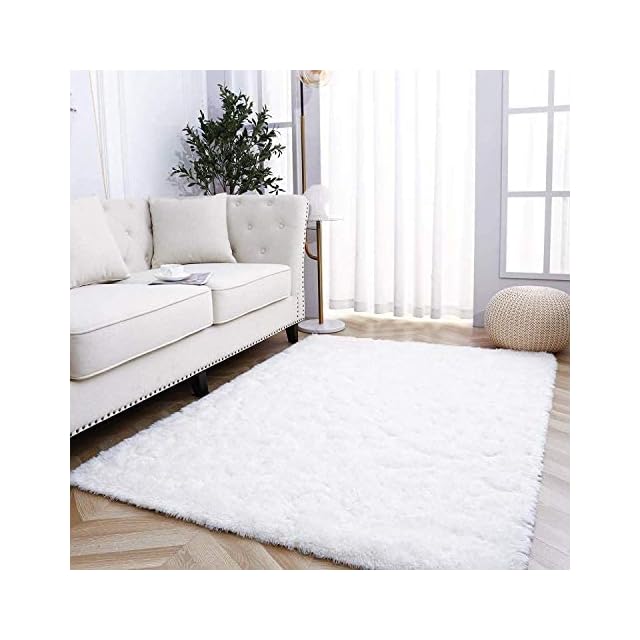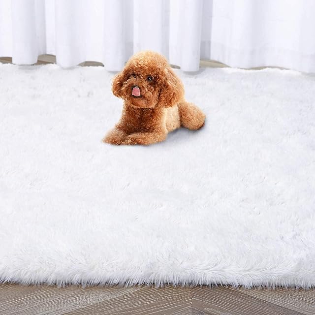 Kinganda カーペット ラグ ふわふわ 北欧 ラグマット 3畳 シャギー 滑り止め付 抗菌 防音 防ダニ 防カビ 折り畳み 柔らか 長方形 冷房 床暖房対応 オールシーズン(160x230cm, 白い)