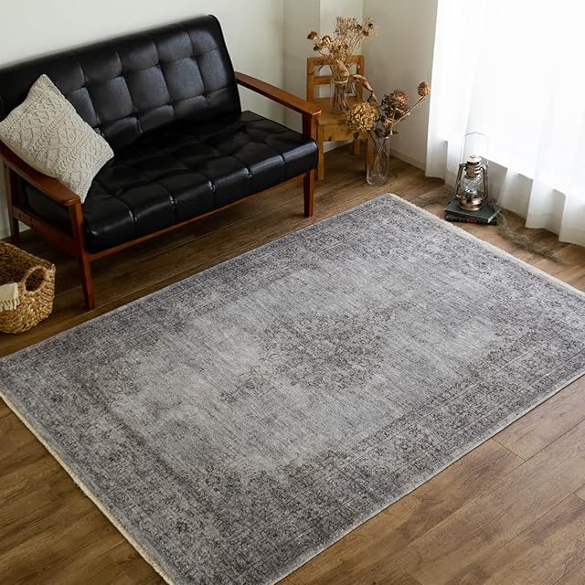 サヤンサヤン ヴィンテージ風 クラシック柄 シャルム ラグマット 1畳 90×140 ダークグレー
