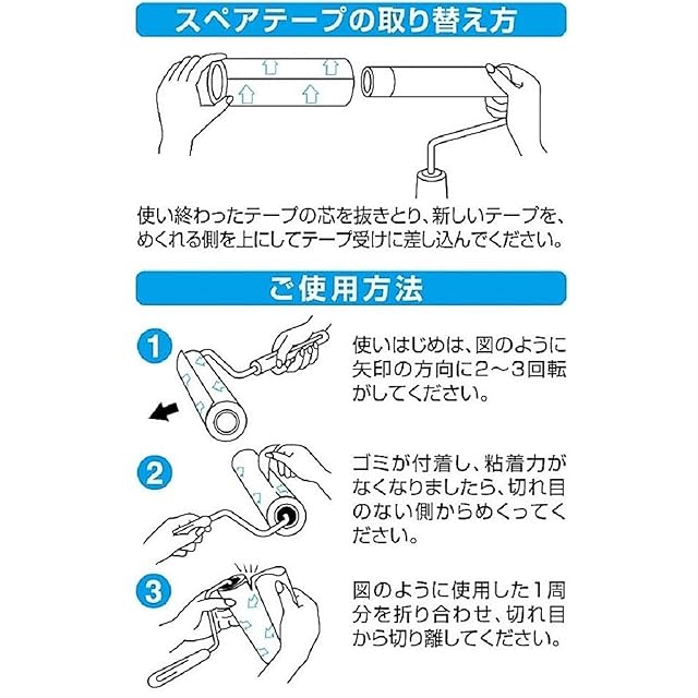 細かいところの色々なゴミを逃さずらくらくキャッチする粘着クリーナー。幅80mm紙芯内径38mmの粘着テープが使用可能。