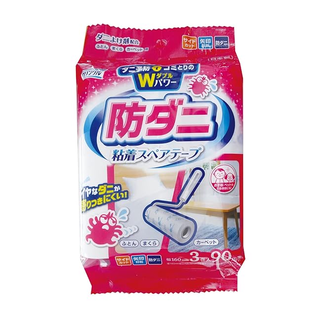 ライフ堂 防ダニ 粘着スペアテープ 布団用 枕用 カーペット用 全面塗り 各社共通サイズ 90周 3巻入 ダニよけ剤配合 サイドカット 矢印印刷 クリンクル LD-616