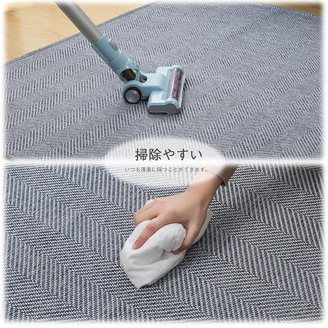 【お手入れ簡単】部分的に汚れた時は、中性洗剤を薄く溶かした水をタオルなどに含ませ、固く絞って拭き取ってもいいです。厚さはロボット掃除機が乗り越えられる厚みです。カーペットは折りたたんだ状態で包装されており、輸送中にしわが発生するのは通常の現象です。梱包を開封してカーペットを平らに広げ、自然に置いておけば、3~10日以内に元の状態に戻ります。【機能/素材】滑り止め、防音、耐磨耗性、色褪せなし、遊び毛が出にくい、安定感あり、軽量タイプ。お部屋に一枚敷くだけで、優しく、やわらかな空間になるようなナチュラルテイストにこだわったアイテムをラインナップしています。 組成:表生地:ポリエステル100%、充填物:ウレタンフォーム、裏生地:不織布 ポリエステル100% 。