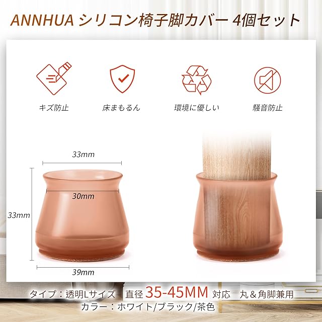 Annhua 椅子脚カバー 椅子の足カバー シリコン 4個セット 椅子脚キャップ いすのあしカバー 滑りやすく 取れない テーブル脚カバー 椅子の足 傷防止 騒音防止 丸&角脚兼用 Lサイズ ブランウド