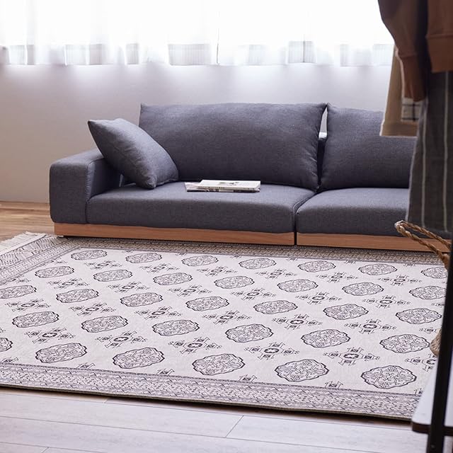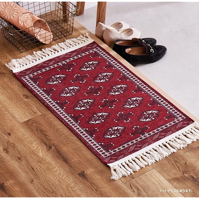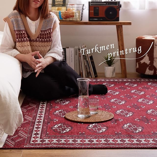 トルクメン族が一点ずつ手織りで作るトルクメン絨毯。そんな伝統的な絨毯をプリントで繊細に再現しました。本物はちょっと手が出ないけど…という方にもおすすめです。さらっとした手触りです。毛足がほとんどないため、ゴミが溜まりにくくお手入れがしやすいです。また、手洗いできるので、汚れても安心。いつでも清潔にお使いいただけます。