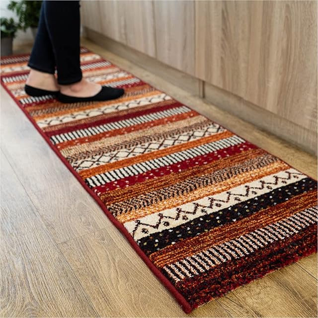 サヤンサヤン キッチンマット ラグ ボーダー ジオメトリーラインⅡ 50x180 レッド