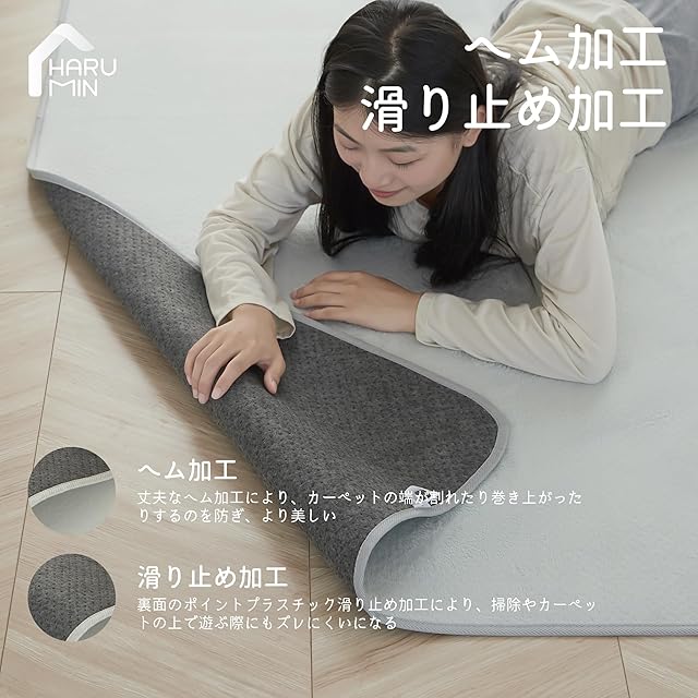 【滑り止めでズレにくく、まるで床に貼りついているかのようなカーペット】丈夫なエッジ加工と底部の点プラスチック加工により、上で走ったり飛び跳ねたり、また掃除機をかけても移動しにくくなっており、子供やペット、お年寄りのいるご家庭におすすめです。