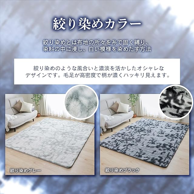 ・【商品の特徴】ふわふわシャギー、オシャレなカラー、ラビットファーのような手触り、お手入れ簡単、毛が抜けにくい、滑り止め付き、ホットカーペット対応、床暖房対応、オールシーズン、手洗い可能