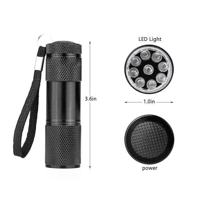 このUV懐中電灯には、波長395nm、高輝度、より均一な出力、より耐久性のあるアルミニウムボディを備えた9つのトップグレードのUV誘導ランプがあります。