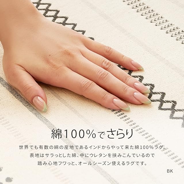 さらっとしたタッチ感が特徴のコットン100%ラグ。コンパクトに畳んで洗濯機で丸洗いが出来るため、ラグを清潔に保ちたい方や小さなお子様のいるご家庭などにもおすすめです。