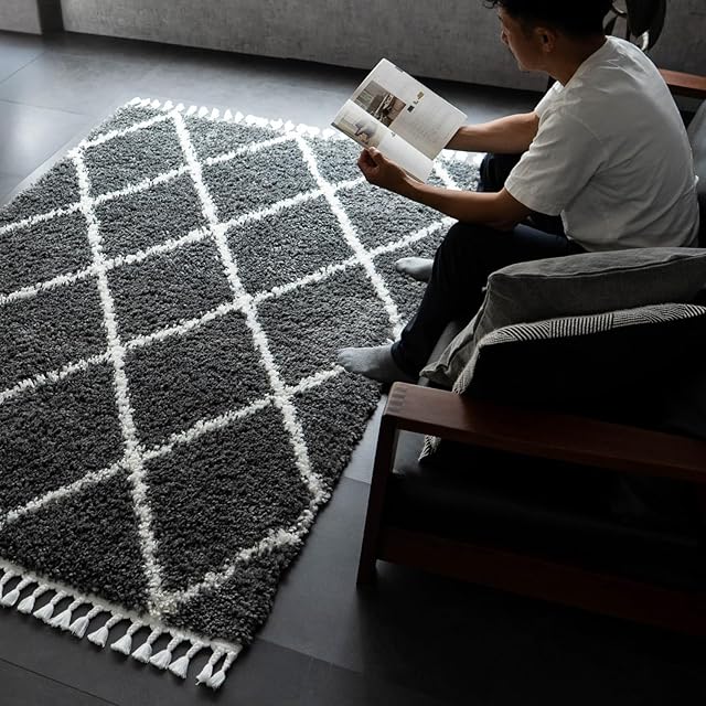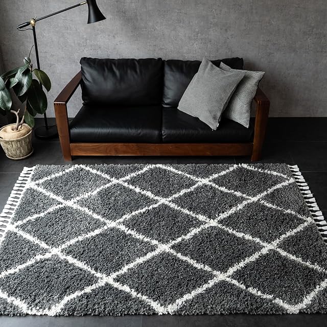 【サイズ】約 133x195 cm / 約1.5帖 / 長方形 【カラー】ダークグレー / (房込み 約133×210cm前後) ※表示サイズより数cmの誤差がある場合がございますのでご了承ください。