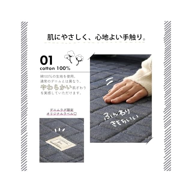 フリーリー ラグ カーペット 綿100% 130×185cm キルティングラグ 洗える デニム調 ラグマット 洗える 絨毯 じゅうたん オールシーズン (Sサイズ・ネイビー)