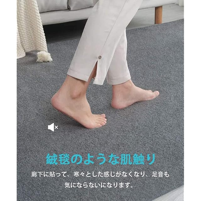 「騒音対策、キズ防止」吸音性が高い、このカーペットは様々なところに適しています。ゲームをする時チェアの摩擦音、子供が走って遊ぶ音、ペットの爪がフローリングに当たる音など、小さな生活音を吸音し、和らげることができます。廊下に貼りました。寒々とした感じがなくなり足音も気にならないぐらいになりました。