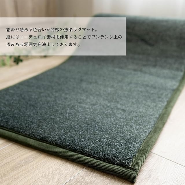 【厚み】ラグ全厚:約13-14ミリ(パイル長:約3ミリ/中材:ウレタン厚み 約10ミリ)【組成】ポリエステル 100 % /縁テープ:細コーデュロイ/中材:ウレタン/裏面:不織布(ドット滑り止め付き)【原産国】中国