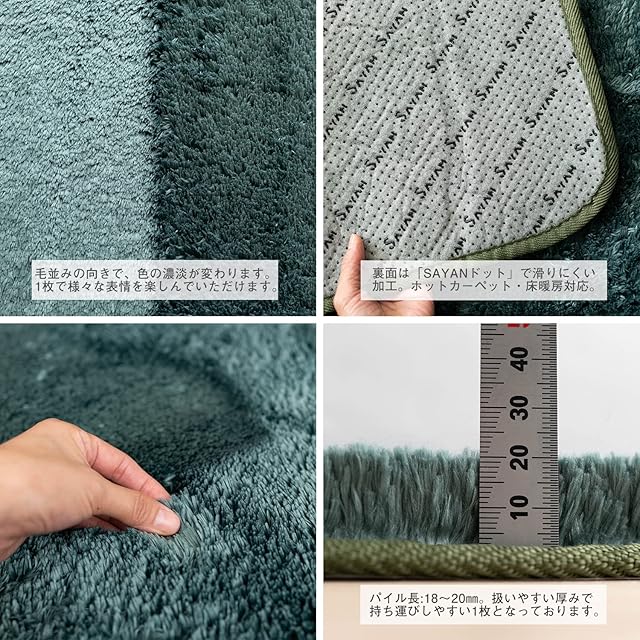 【厚み】全厚:約22~24㎜(パイル長:18~20㎜)/中材:ウレタン厚み 約4ミリ 【組成】ポリエステル 100 % (マイクロファイバー) /中材:ウレタン/裏面:不織布(滑り止め付き)【原産国】中国