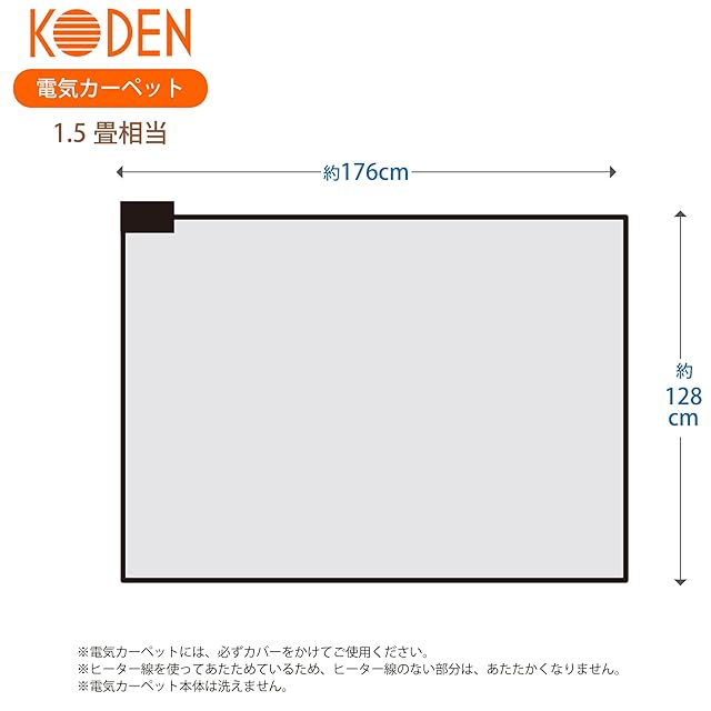【ゆったり余裕ある1.5畳相当サイズは一人暮らしやパーソナル使用にぴったり】こちらの電気カーペットは縦約128cm、幅約176cmの1.5畳相当サイズとなっております。少し大きめのサイズは一人暮らしのお部屋やソファーの足元などゆったりと使用できます。