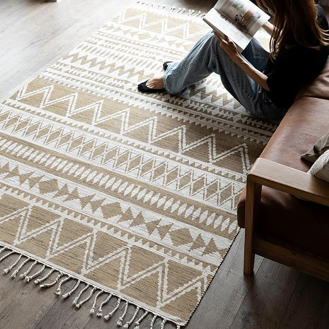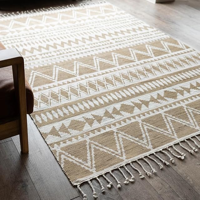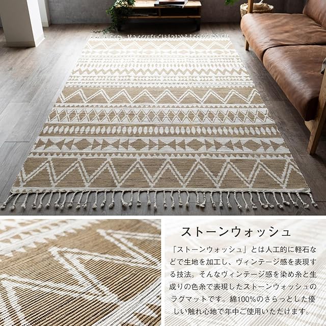 サヤンサヤン ネイティブ柄 幾何学 洗える ラグ マット 100x150cm 1畳 ベージュ 手織り