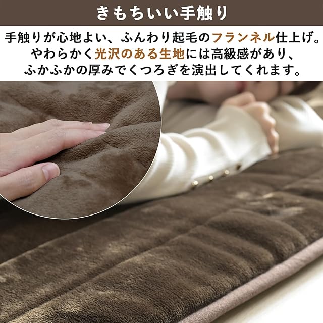 【きもちいい手触り】手触りが心地よい、ふんわり起毛のフランネル仕上げ。やわらかく光沢のある生地には高級感があり、ふかふかの厚みでくつろぎを演出してくれます。