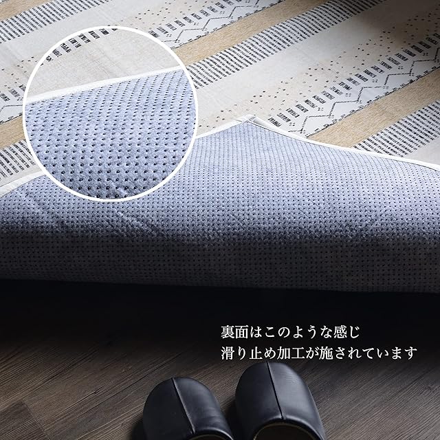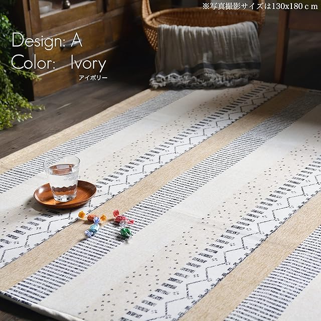 ラグマット 夏用 2畳 プリントラグ 不織布すべり止めつき Aアイボリー