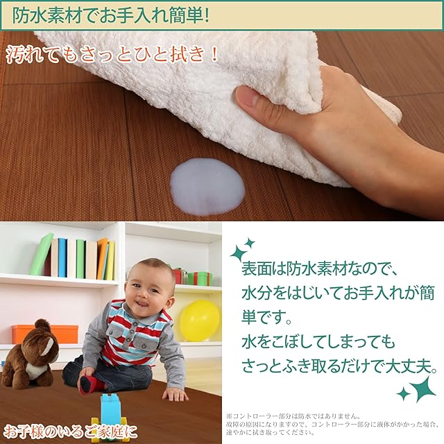 ライフジョイ ホットカーペット 2畳 本体 フローリング調 電気カーペット 176cm×176cm 暖房面切替 キッチン対応 防水 ブラウン JPJ201WB