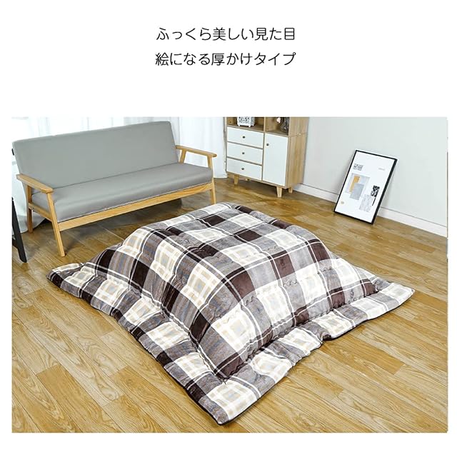 color:チエック柄 ブラウン size:約185x185cm(こたつ掛け布団):