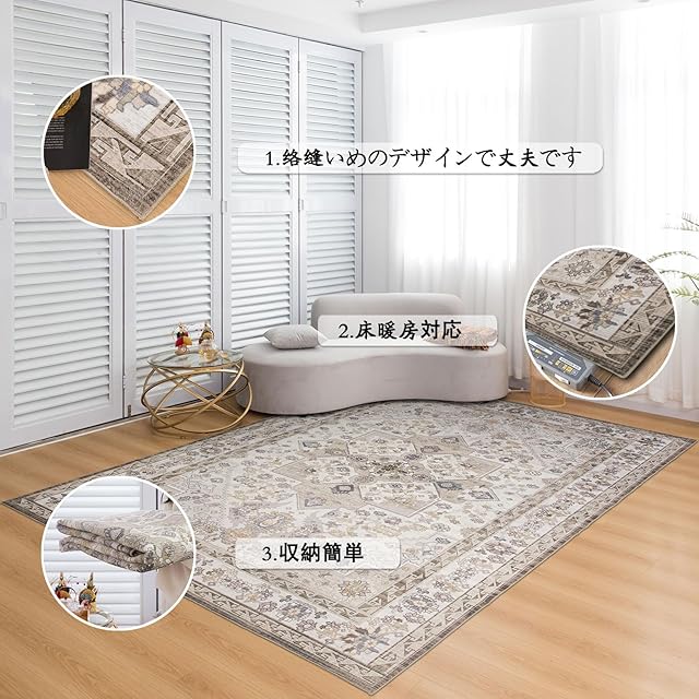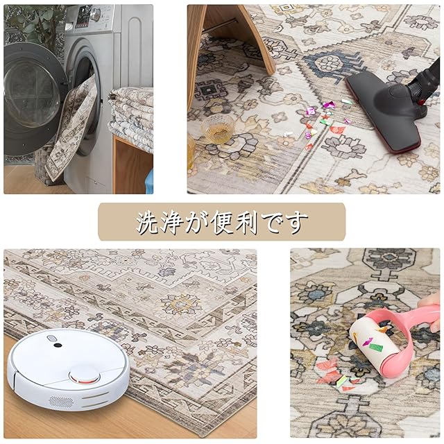【素敵です】 とっても可愛いヴィンテージ感のある色とデザインなのですが敷くだけで部屋を一気におしゃれにしてくれます。モノをこぼしても、サッとひと拭きで汚れも落ちるので、ペットや子どものいる家族にはぴったりです。