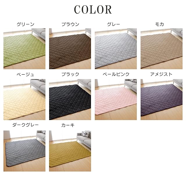 フリーリー ラグ カーペット 抗菌 防ダニ キルトラグ 洗える 130×185CM ラグマット 滑り止め付 Sサイズ (S無地・グリーン)