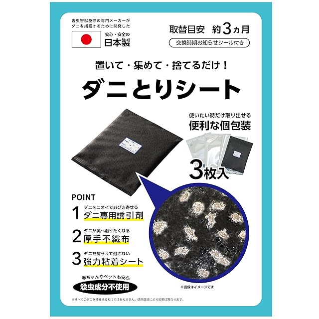 高儀(Takagi) ダニとりシート 3枚入 個包装 日本製 ダニ取り ダニ捕り ダニ専用誘引剤 殺虫成分不使用 置くだけ 簡単 3ヵ月 日付シール付 寝具 カーペット ソファ 押入れ クローゼット