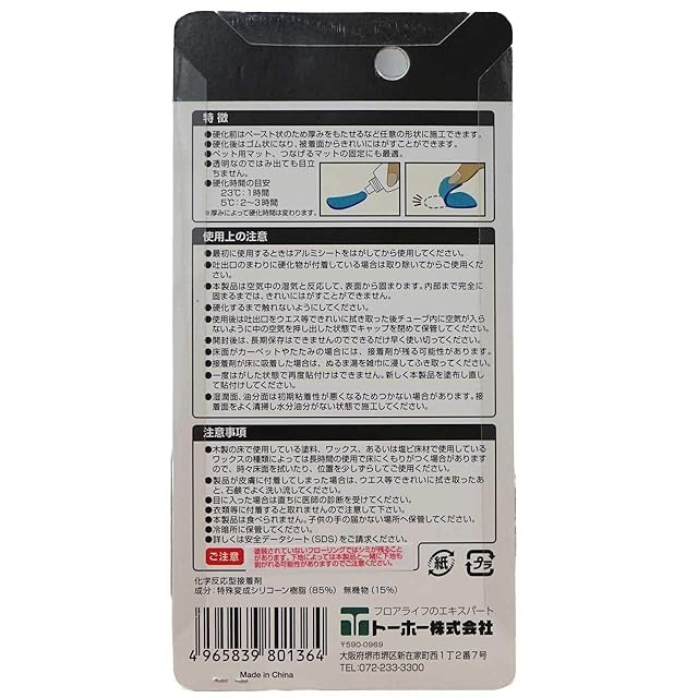 【商品特徴】●長続きする吸着力 ●掃除ラクラク ●臭わない ●床面に残らない ●ペットが走り回ってもマットがよれない ●掃除機をかけてもしっかりラグが密着しているので掃除がラク ●簡単塗るだけ滑らない! ●使い終わればはがせる! ●硬化前はペースト状のため厚みをもたせるなど任意の形状に施工できます。●硬化後はゴム状になり、被着面からきれいにはがすことができます。●ペット用マット、つなげるマットの固定にも最適。●透明なのではみ出ても目立ちません。●硬化時間の目安 23℃:1時間 5℃:2~3時間