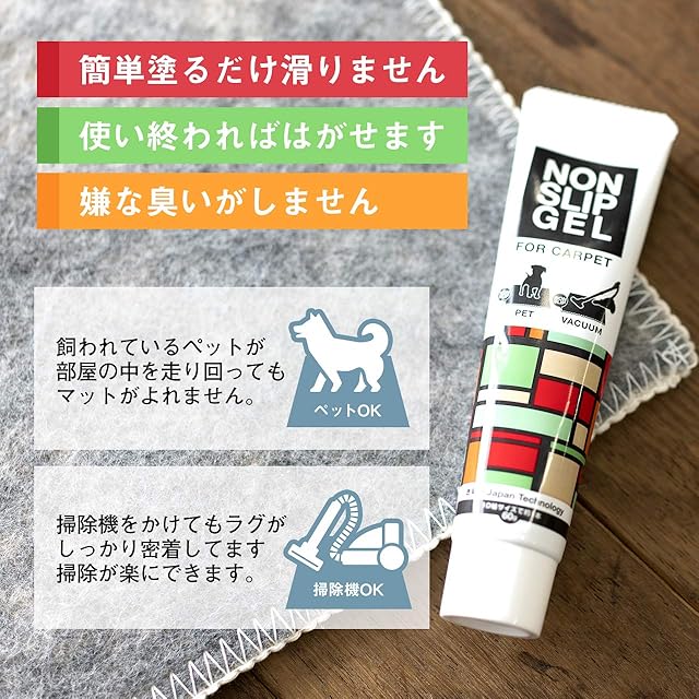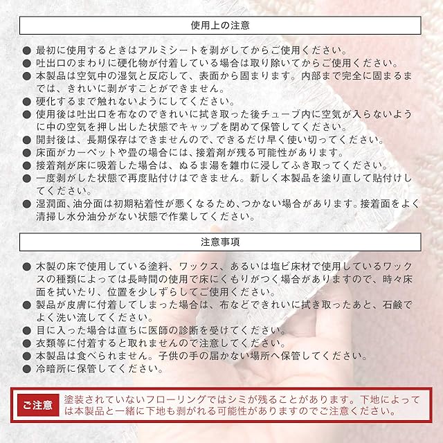 【商品名】フローリングですべらないジェル カーペット用 NON SLIP GEL FOR CARPET (化学反応型接着剤)【内容量】60g(10畳サイズで約1本)