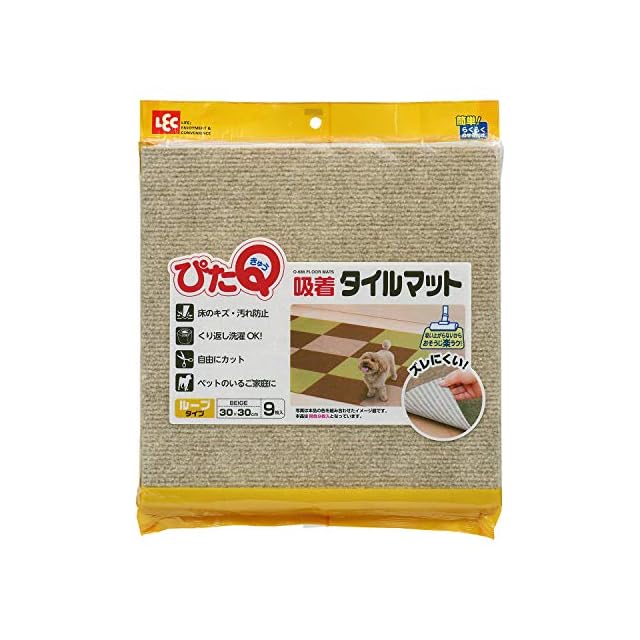 レック ぴたQ 吸着 タイルマット 30×30cm 9枚入 ベージュ (タイルカーペット) O-686