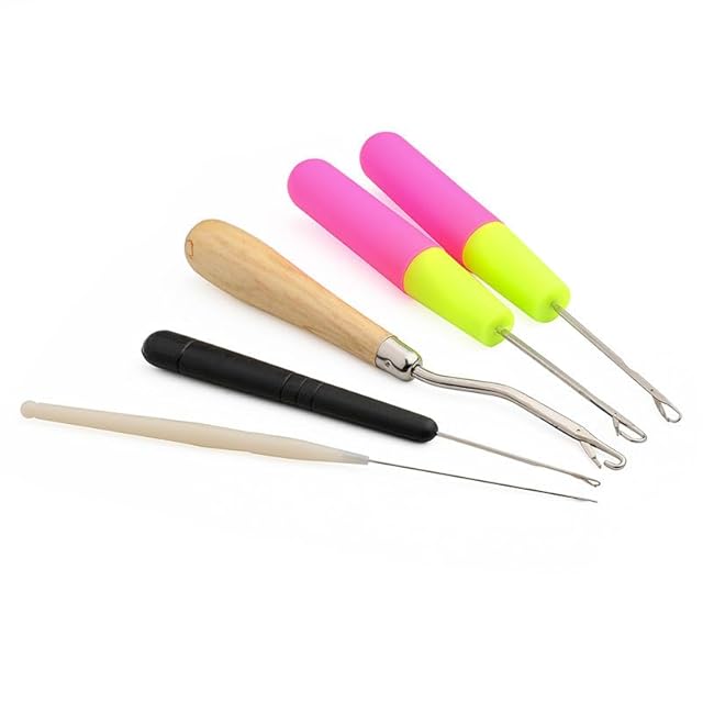 【多機能】作業能率がアップ:チップをネックの部分にストックできるよう長めに設計されています,かぎ針 編み針 毛織り針カーペット 5個入り,それにより作業能率がアップします,帽子、カーペットなどの作り&髪編みに最適!マイクロ 編み物用 ラッチフック かぎ針 編み針 毛織り針カーペット編み 毛糸DIYマフラー帽子などのメンテナンス用 かぎ針セット 編み針