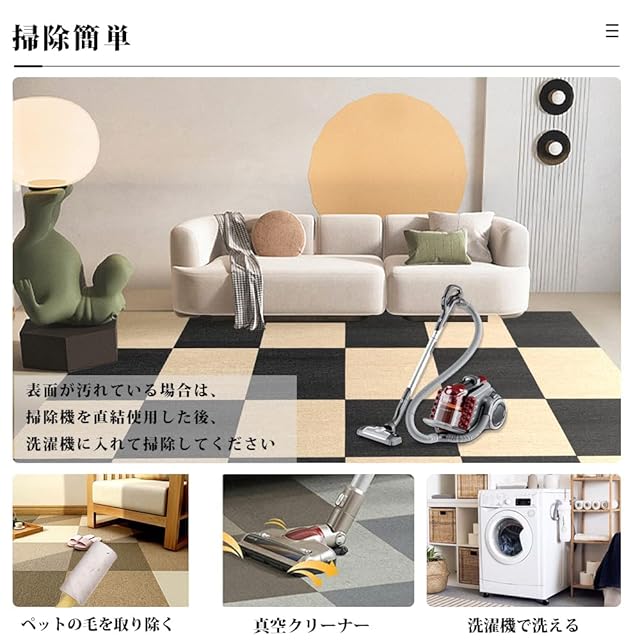 【洗える・お手入れ簡単】ペットのオシッコなどのジョイントマット汚れがあったら、その部分だけはずして洗えばいいので手入れがとにかく楽なんです。小さく、軽いので乾きも速い。手洗い若しくは洗濯機のソフトコースで洗う場合、変形することもなく、風通しのいいところで乾かすとすぐに乾けます。注意:背面を乾燥する時、日差しは極力避けてください。