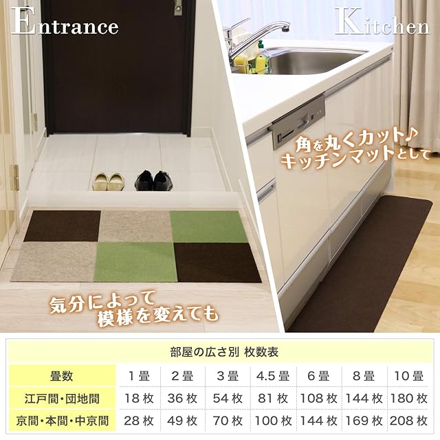 スペースに合わせて自由に組み合わせて敷くことができ、床面の形に合わせて、ハサミで簡単にカットできる。