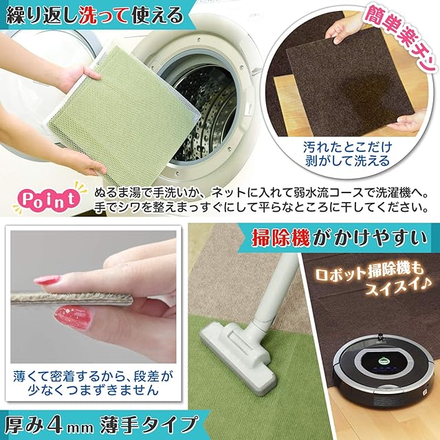 洗濯機(弱水流)で繰り返し洗える。汚れたところだけ1枚ずつ洗濯ができる。
